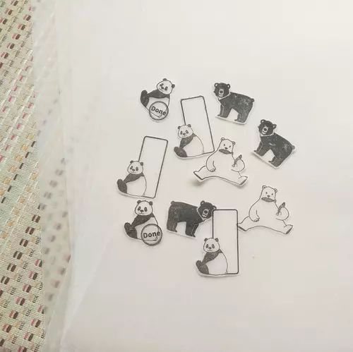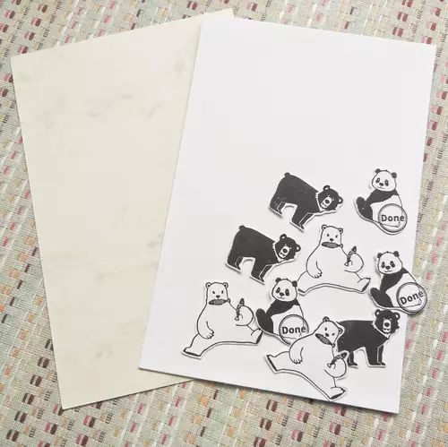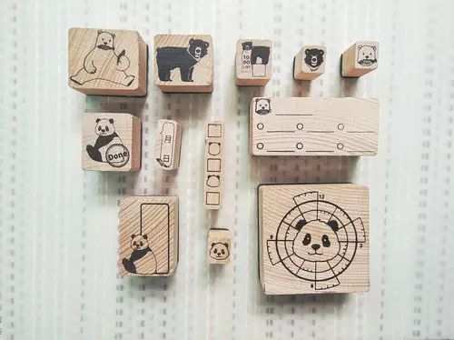 2.印章相互搭配 几个小印章相互搭配可以组成一些可爱的小图案,再用基础款胶带简单拉条装饰。