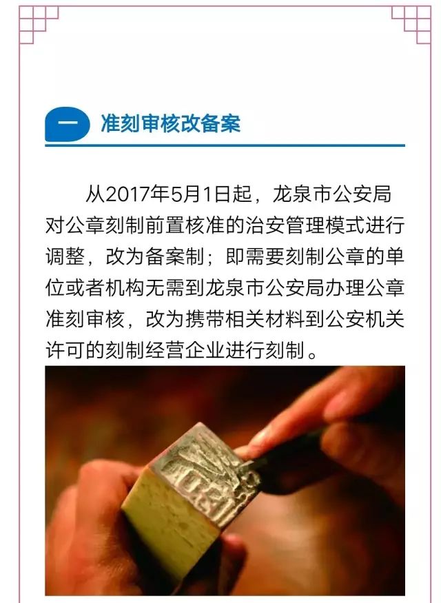 目前,龙泉市内经公安机关许可的公章刻制经营企业为