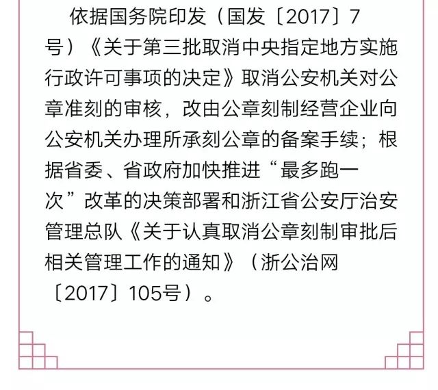 4、对于公章被抢、被盗或者因其他原因丢失,需要重新刻制公章的,除按前1、2项规定提交有关材料外,还应提供公章使用单位所在地市级以上公开发行报刊(处州晚报或丽水日报)刊登的作废声明。